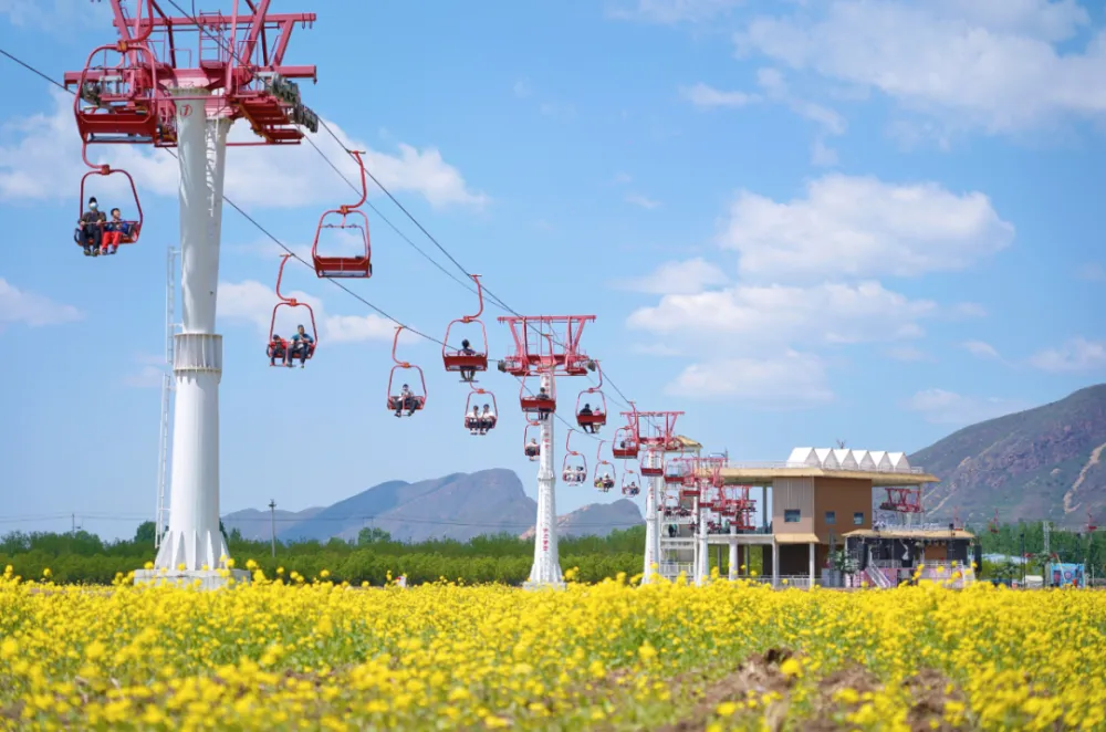 該條索道線路分為1號線路330米、2號線路390米,每小時運量700人,單向運行時間5.5分鐘,該項目建成后顯著提高了游客旅游體驗性、探索性、新鮮性的同時減少碳排放,為山里各莊景區(qū)注入新活力。