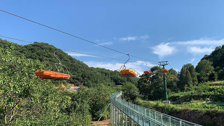 固定抱索器拖船索道主要用于漂流水滑,索道整體分布為驅(qū)動(dòng)站、迂回站和線路部分,漂流船吊籃通過固定抱索器與鋼絲繩固定在一起。驅(qū)動(dòng)站是為索道提供動(dòng)力的部位,經(jīng)迂回站的迂回輪導(dǎo)向后,把裝載有漂流船的運(yùn)輸?shù)趸@返回至上游的驅(qū)動(dòng)站,達(dá)到運(yùn)輸漂流船的目的,利用索道方式運(yùn)輸漂流船的效率高。索道造價(jià)低,維護(hù)成本低,配置工作人員少,節(jié)約運(yùn)輸成本。